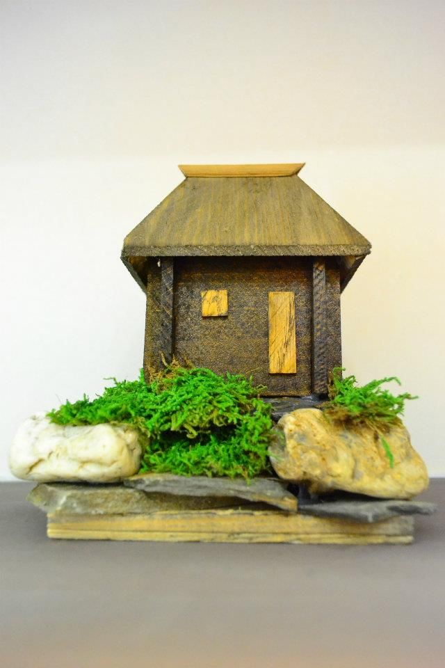 Drvena kućica sa kamenim detaljima.