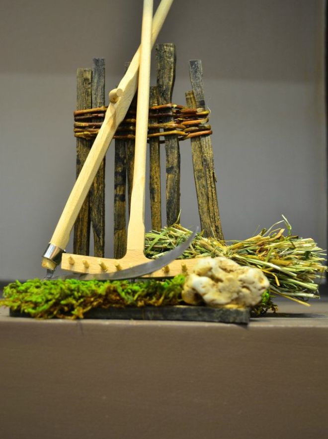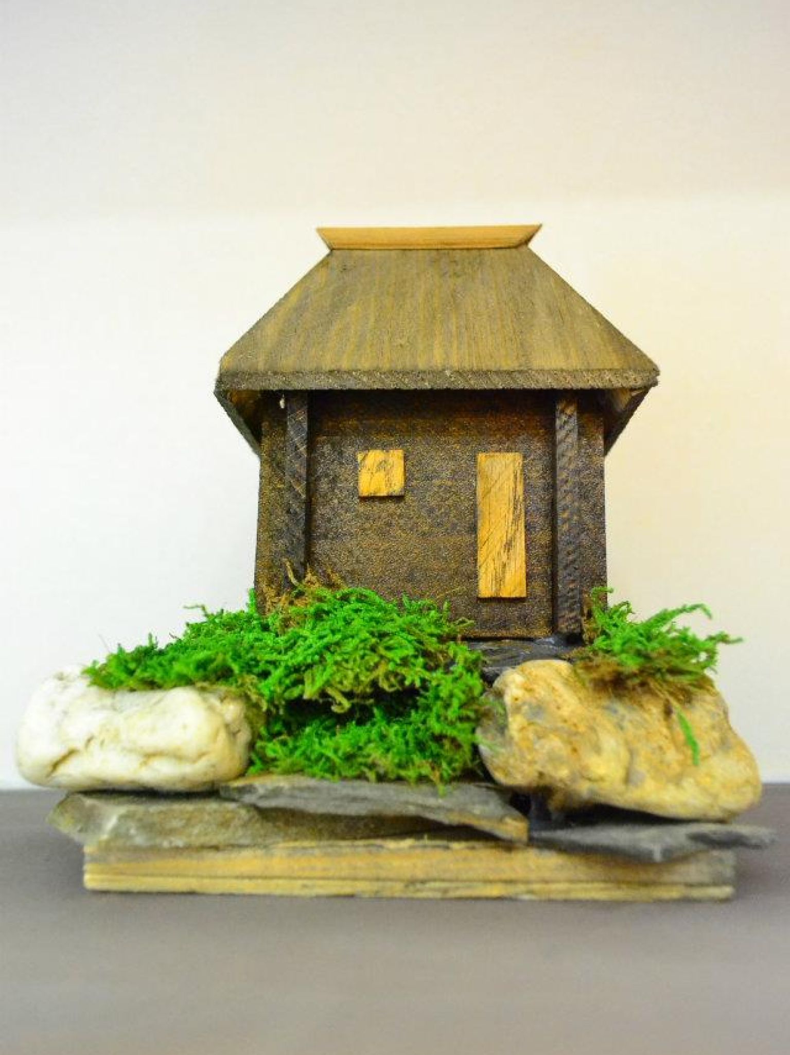 Drvena kućica sa kamenim detaljima.