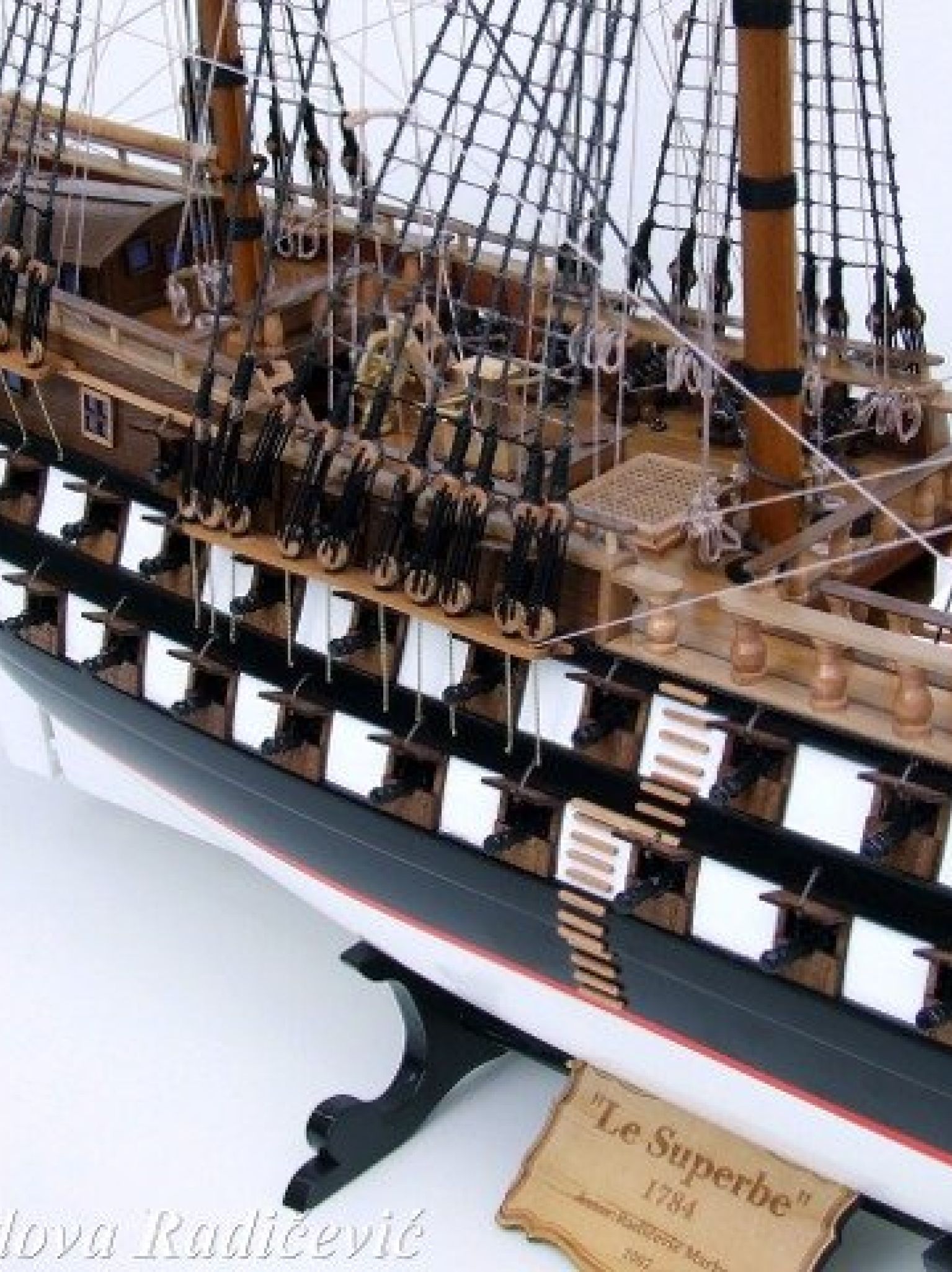Le Superbe je sagrađen 1784. godine i bio je ponos francuske ratne mornarice. Sagrađen je po projektu jednog od najvećih i najboljih brodskih inženjera Jacques Noel Sane, koji je 30 godina projektovao francuske ratne brodove. Le Superbe je sagrađen u Brestu 1782. godine a porinut u more 1784. godine. Ovaj brod je bio lep primerak francuske ratne mornarice i simbol starog režima, načina vladanja i bogatstva. Imao je 74 topa većeg kalibra i bio je raspoređen u flotu admirala Willaret de Joyeuse.